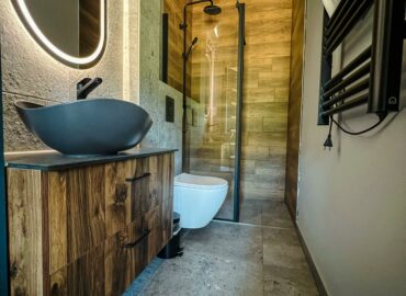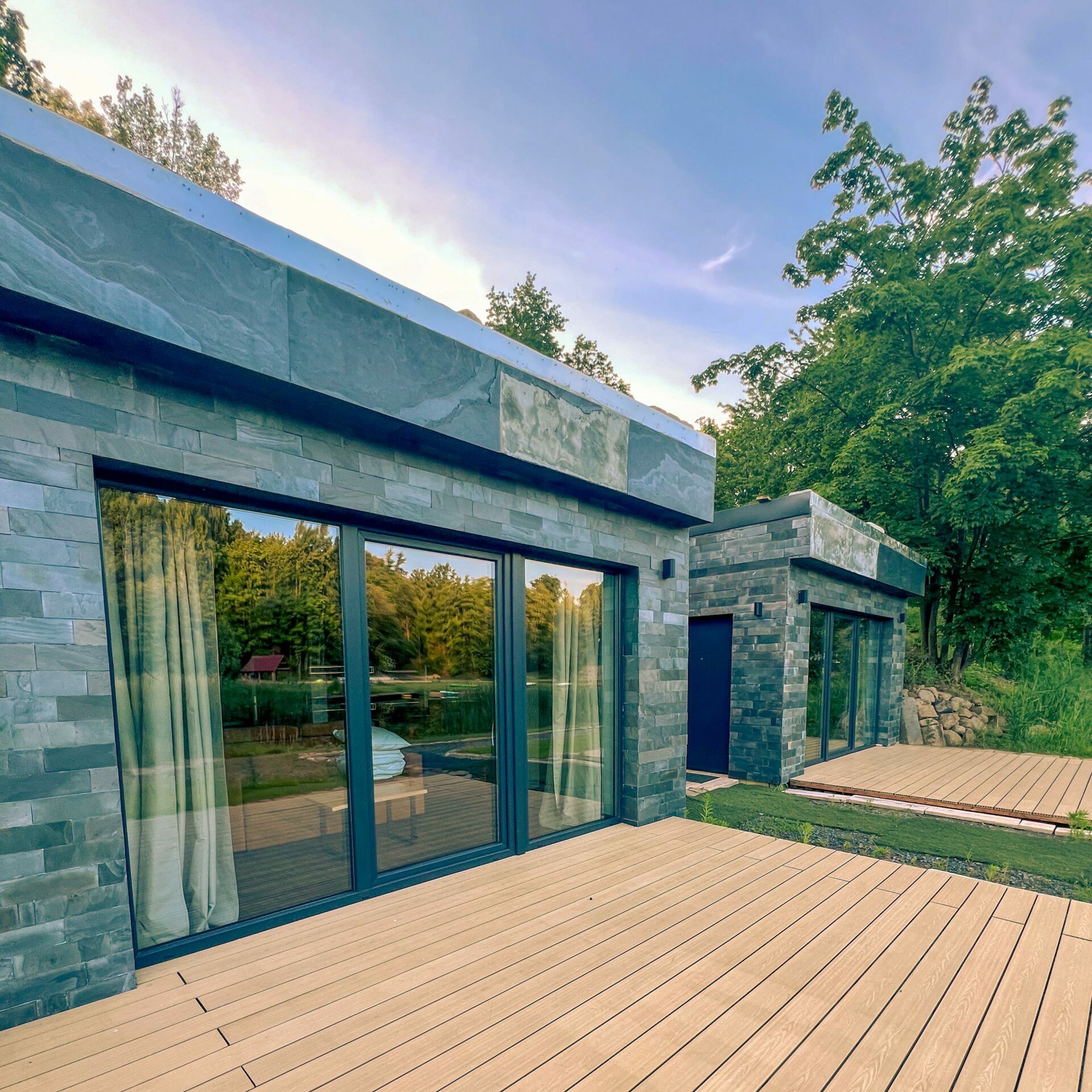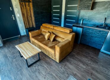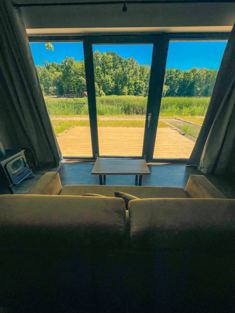 Wkrótce nad domkiem pojawią się zielone tarasy – dostępne dla gości, idealne, by rozłożyć się na leżaku lub kocu i kontemplować widok na jezioro, otaczający las i budzącą się naturę. To wyjątkowe miejsce, gdzie każdy poranek może zacząć się od chwili spokoju, a każdy wieczór zakończyć obserwacją nieba pełnego gwiazd.