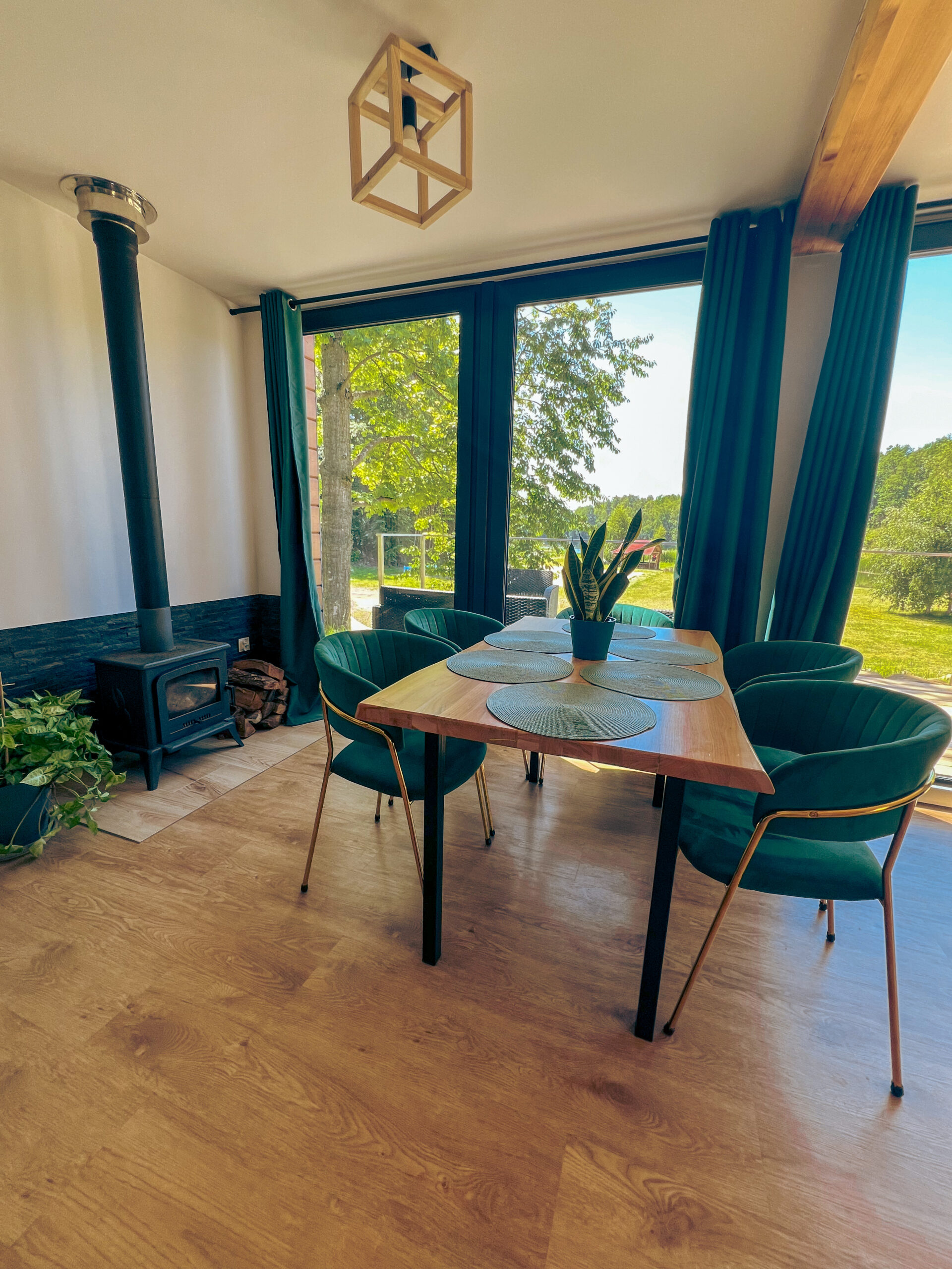 Wnętrze domu jest utrzymane w zielonych tonacjach, które nawiązują do jego nazwy, choć ta ma głębsze korzenie. Domek Polny to hołd dla okolicznych polan Izerskich: Polany Jakuszyckiej, Polany Izerskiej, Cichej Równi, polany przy Chatce Górzystów i wielu innych. Tu poczujesz wiosnę – zapach świeżej trawy, ciepło słońca i lekkość wiosennych dni. Jakbyś leżał na kocu na polanie, licząc chmury i rozkoszując się spokojem natury. Czy nie brzmi to jak azyl w sercu natury?