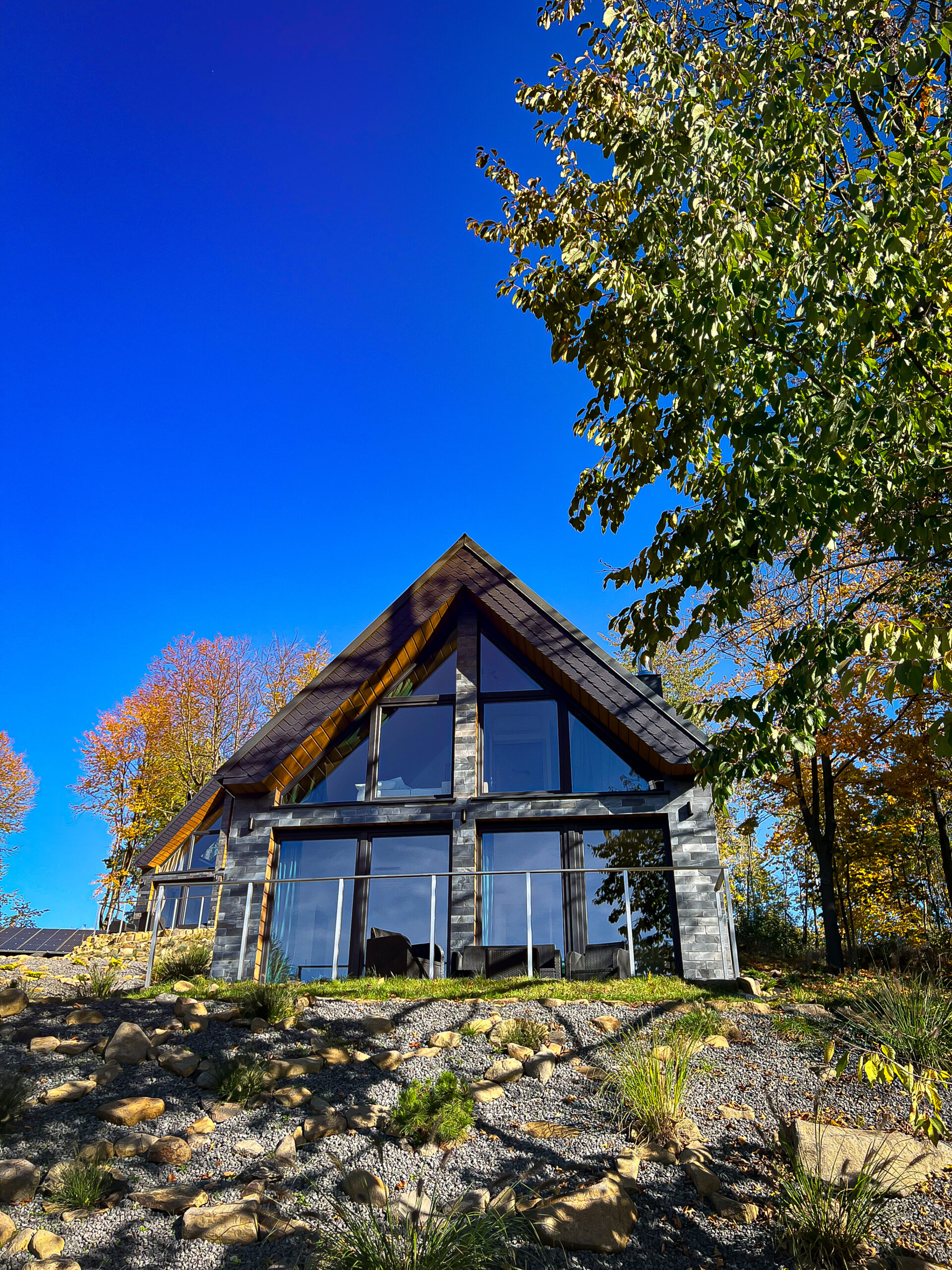 Domek Polny usytuowany jest na skarpie, nieco niżej, bliżej głównej przestrzeni naszego ośrodka. Po lewej stronie znajdują się drzewa rosnące tuż przy domku, które zapewniają przyjemny cień w ciepłe dni. Z tarasu i okien roztacza się przepiękny widok na jezioro, naszą polanę oraz rozległy las, który otacza całą Wieża80.
