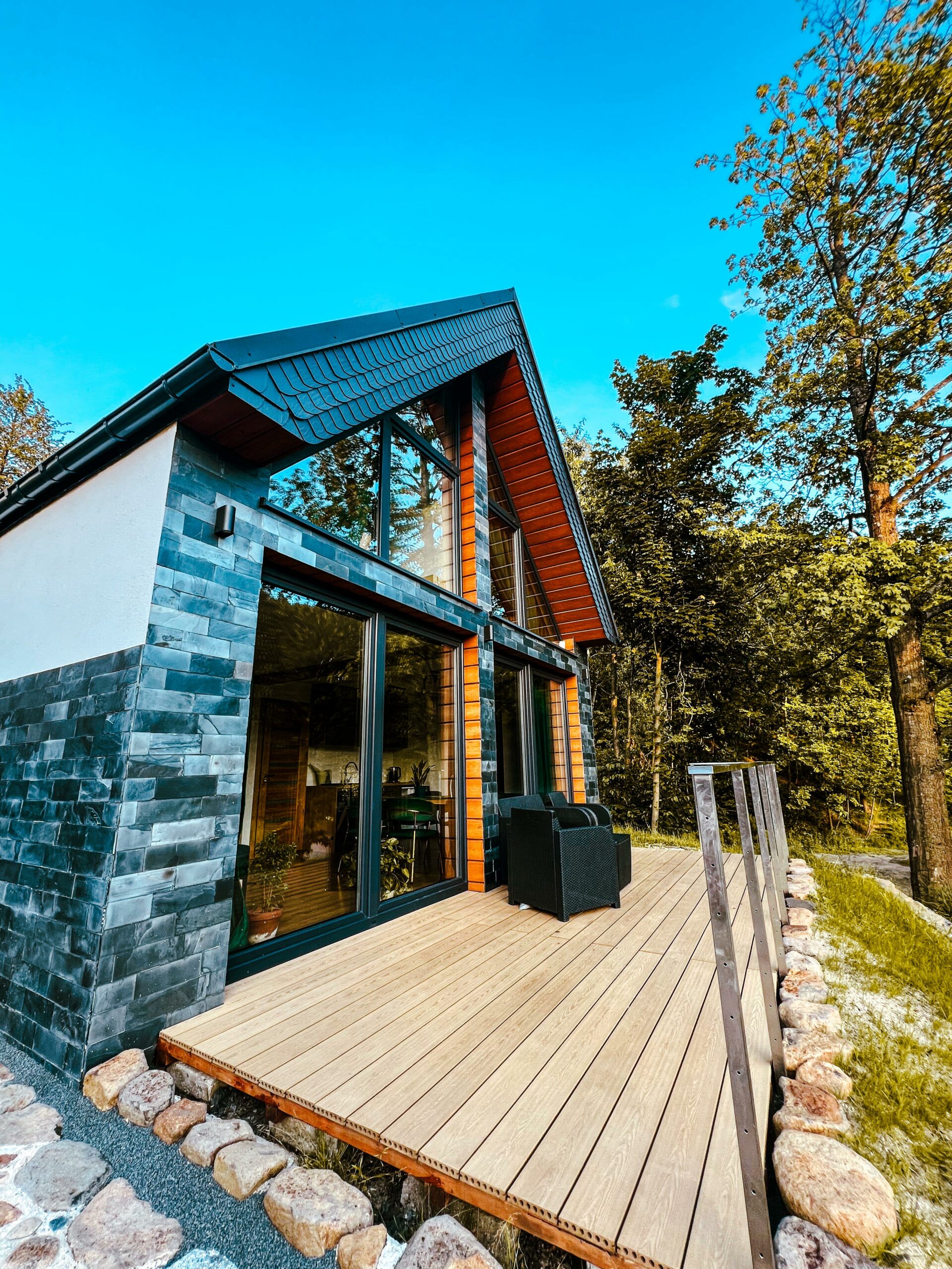 - 4 domki na skarpie – idealne nawet dla 6 osób, z pięknym widokiem na jezioro,
